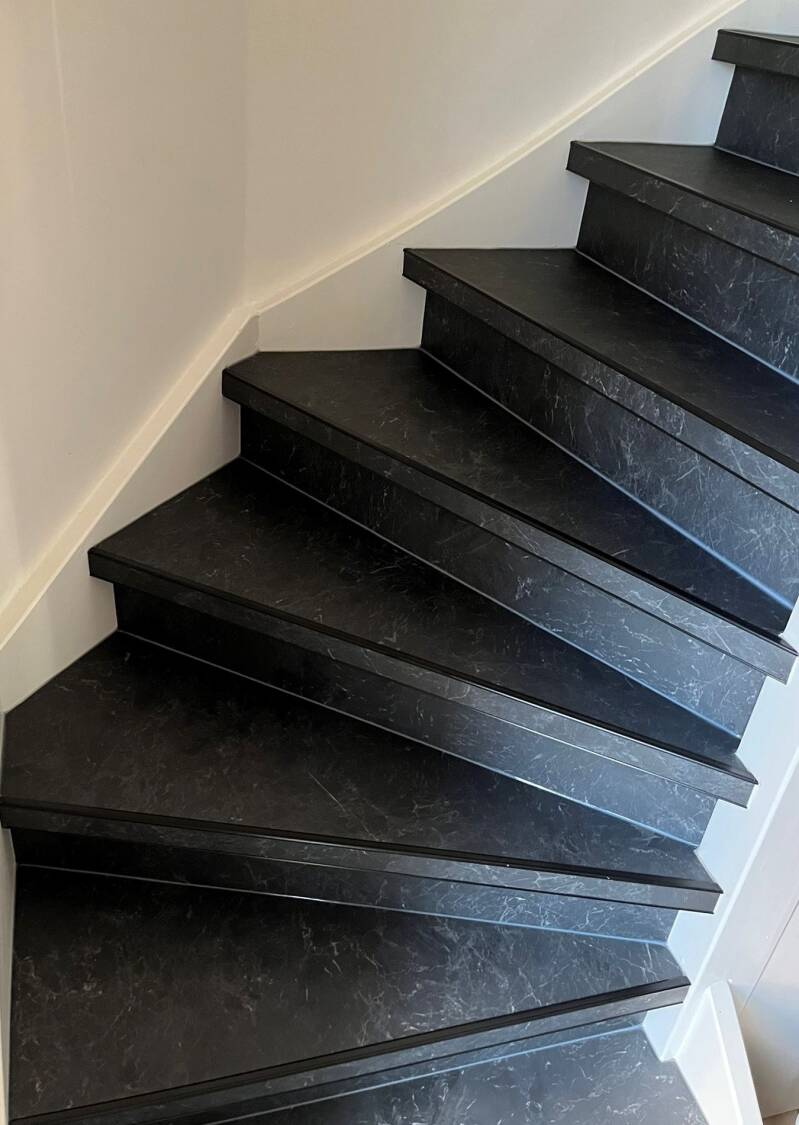Wilt u uw trap een mooie uitstraling geven, ervoor zorgen dat deze een lange levensduur met minimaal onderhoud? El beton creaties & reparaties zorgt met vinyl trapbekleding dat de trap bij u thuis weer als nieuw is.